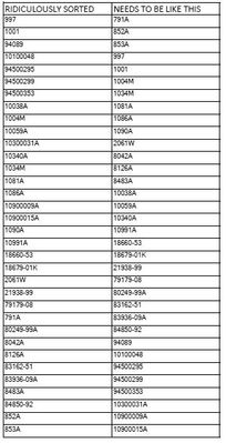IM TRYING TO DO INVENTORY HERE AT WORK. HARLEY DAVIDSON SOME YEARS AGO CONVERTED THERE PART NUMBERING SYSTEM FOR ALL NEW PARTS FOR YEARS IT HAD BEEN, 5 DIGITS A DASH FOLLOWED BY 2 DIGITS (YEAR OF INT...