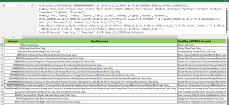 On web there is SpellNumber() VBA custom function which spell numbers to word in million, billion. We Bangladesh, India, Pakistan spell amounts like lakh, crore etc. Here is a formula to convert amou...