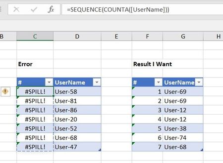 Spill Error in Table while using sequence formula