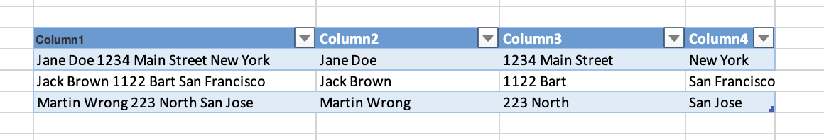 Just format all the information you need as a table, insert one example across like you did in your question, and then select CTRL+E to flash-fill down the column. I created two other examples and it all worked quickly for me. Example attached, I typed across the first row and then flash-filled down.