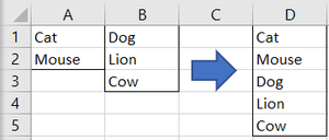 I have 2 columns as above, column A and column B. I want them conbimed to column D without ANY manual work. Note: (1) VBA is NOT allowed (by my company policy lol). (2) You might want to cre...
