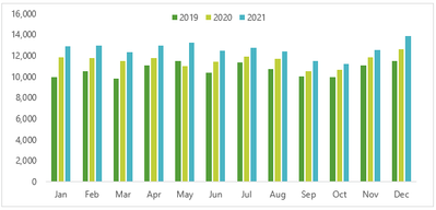 I am looking for some help regarding creating a graph. I am hoping for a chart similar to the one displayed below but I am hoping to split each bar up into 2 (gas and electricity) to display the values as totals of each. Is this possible?