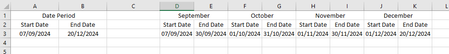 Start and End Date of each Month in a date period