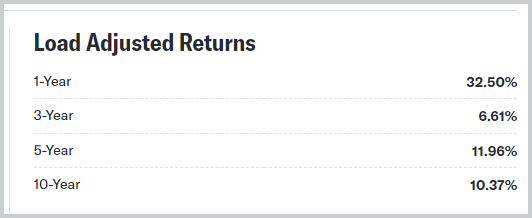 My guess we speak about different metrics. STOCK returns average returns, and indicator from YAHOO are for Load Adjusted Returns.
