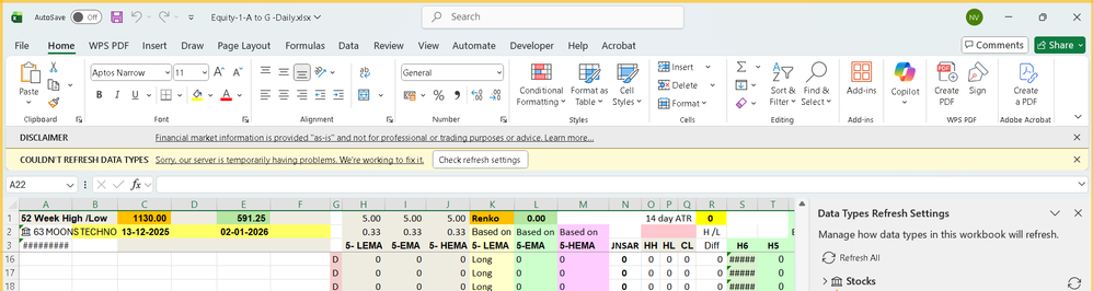 I switched from MS 365 Family to MS 365 personnel and the subscription expired yesterday. The switch was done immediately and as per MS Team the subscription is active though the next charge will be after sometime. All of a sudden from today the stock history is not working and it is showing sever error, the screen shot are attached above. Could anyone please suggest a solution.