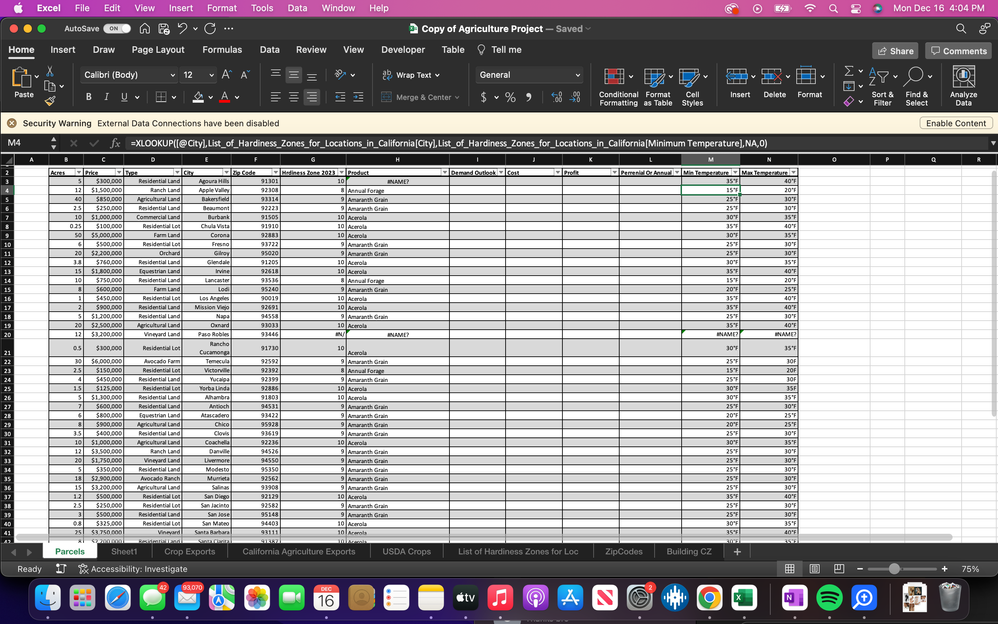 Thank you for this response. From what I understand, when instructing excel to pull up different crops based on the temperature zones or hardiness zones, we utilize the max < the value. In doing so, Excel will look for every crop, with temperature, or hardiness zone, below the the value. Is this correct?