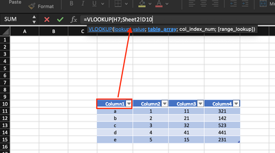 I am trying to make cell C7 in Sheet1 reference to Table1 using VLOOKUP as shown in picture below. And this works.