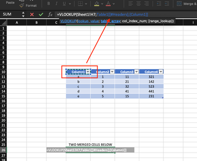 Structured reference does not work on merged cells