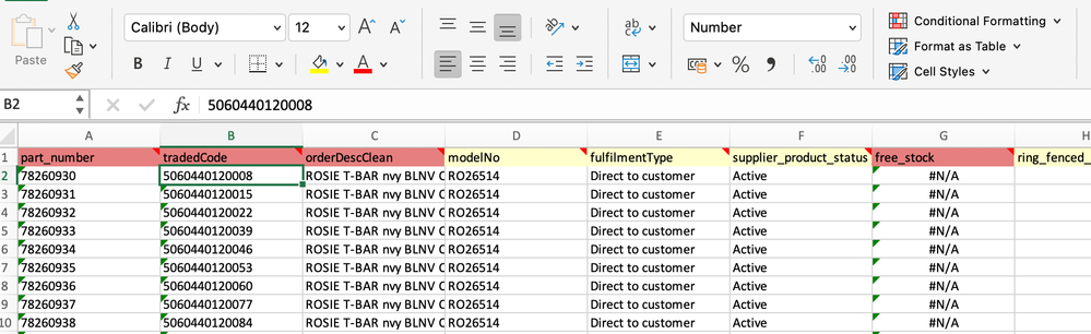 The common data is in the second column (tradedCode). I am trying to fill in the free_stock column.