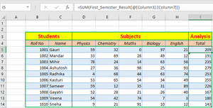In other words, inserting a column in a structured column does not increment the column numbers towards the right of the inserted column as they merely are texts ending with a numerical character. If you want to show the formula as the sum of Column3 to Column8 You need to rename the columns.