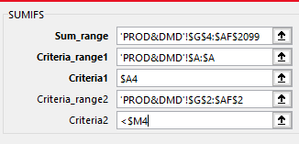 =SUMPRODUCT('PROD&DMD'!$G$4:$AF$2099, ('PROD&DMD'!$A$4:$A$2099=$A4)*('PROD&DMD'!$G$2:$AF$2=$M4)