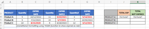 Then a column "Expired?" with the formula you used in the conditional formatting.