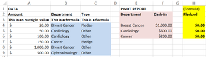 Hi Sergei, there was indeed an error - I mispelled "pledge" - the value was "pledges" DUH!! I was able to find this because of the simple check formulas you suggested. Never though of it. Thanks!!