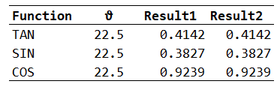 FunctionList = VSTACK(SINλ, COSλ, TANλ) where SINλ = LAMBDA(ϑ, SIN(RADIANS(ϑ))); COSλ = LAMBDA(ϑ, COS(RADIANS(ϑ))); TANλ = LAMBDA(ϑ, TAN(RADIANS(ϑ)));The worksheet formula could then be
