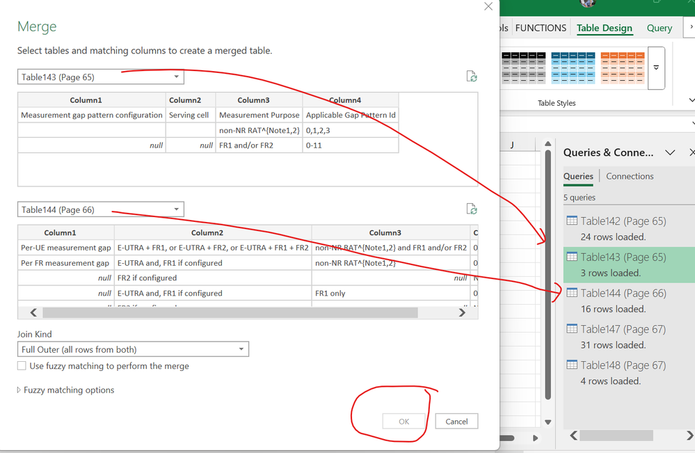 I am trying to merge two tables from a Pdf, but the option is not highlighted as below:-