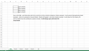 when I press X at the upper right corner of the sheet - it will not close the workbook but will return to the first sheet (TOC) and in that TOC sheet is the control for exiting (closing) the file (say on cell c9)