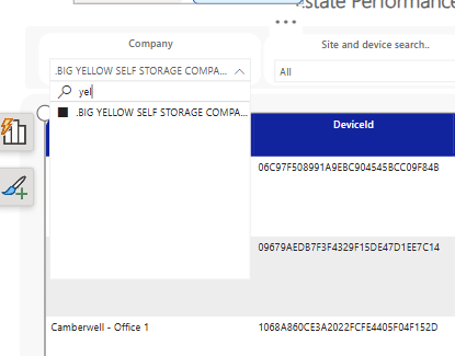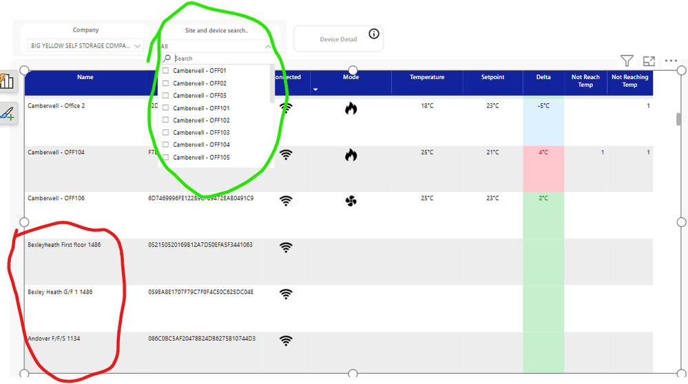 Table should give me records for selected company and not any other records. But the table here shows all records which means the filter is not recognized. for example, the site and device slicer shows correct records for filtered company but table is not: