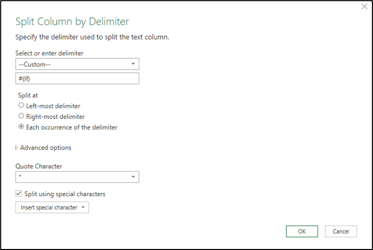 #(lf) is for line feed. If you click Insert special character PQ will put in the #(lf) for you.