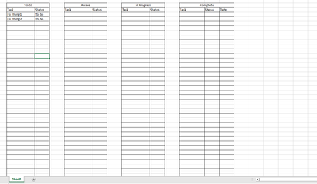 If I understand correctly, you want to create a to-do list with tasks categorized into different columns, and you're looking for a way to easily move tasks between these columns. Here's a suggestion without using VBA: