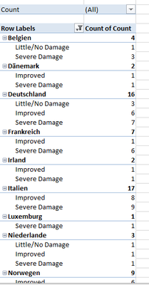 As shown below with to images: I have a PivotTable were use the results from a survey and want to match count of the different answers with the country of the respondents. If I do it manually, the easiest way to get a nice chart, was to copy-paste the pivottable into a new sheet as "values", so I could then manually transform the data into a new table and create different charts with it. But since there is quite a lot of data, I was wondering if there is any automate or is way to do this? (before I start work out some kind of a code in R :D)