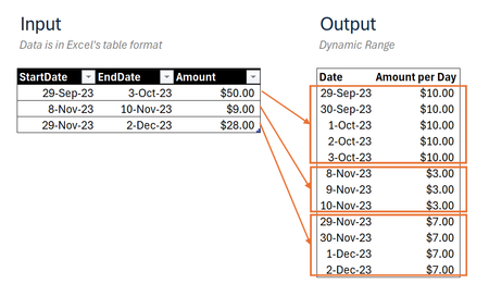 VSTACK(u,HSTACK(_seq,_amt))))),1)This returns the expected result in my Excel for the web sheet. The name of the input table is "Input".