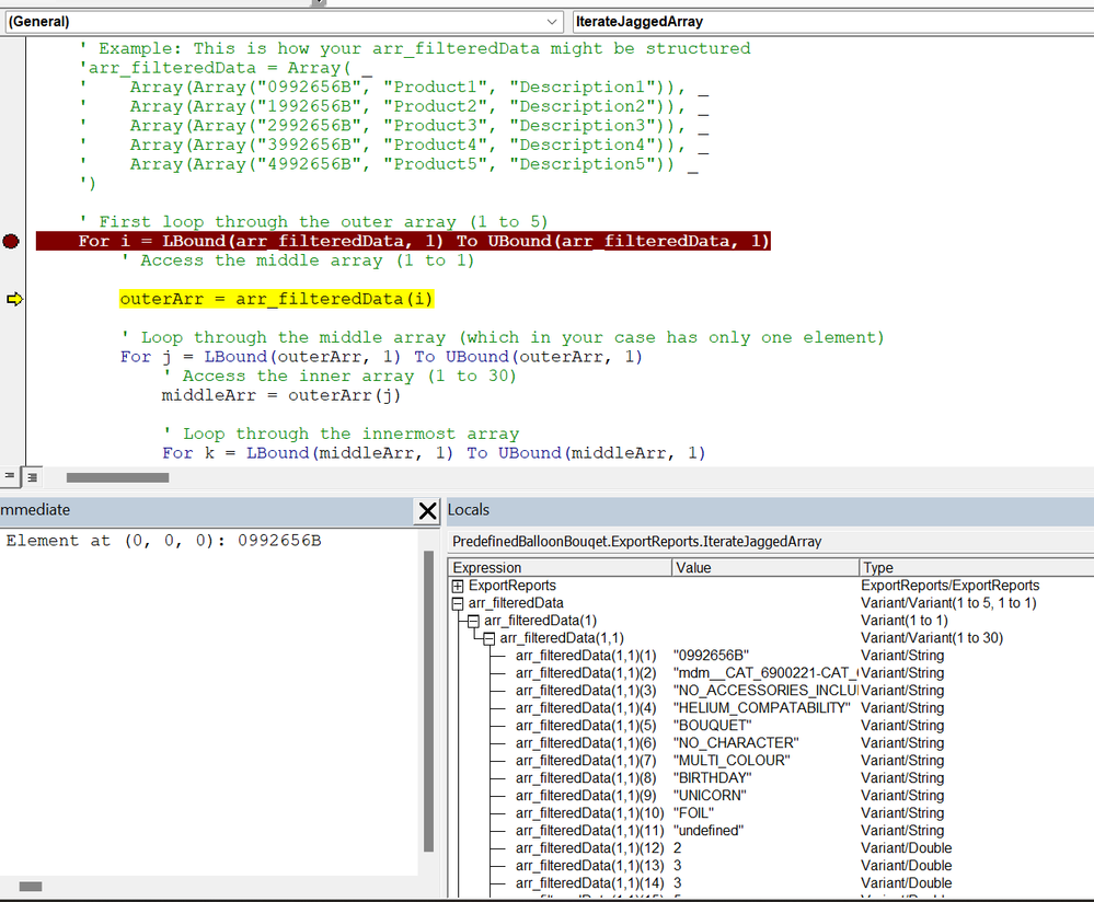 I have a simple example (chatGPT) that works wonderfully and when I look at the structure of arr_filteredData, the example matches my production array. When I alter the simple example to pass down the arr_filteredData from the calling SUB, I end up receiving a subscript out of range error 9.