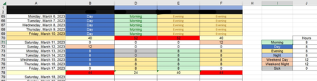 =IFERROR(VLOOKUP(VLOOKUP(D3,Schedule!A71:B125,2,FALSE),Schedule!$I$71:$J$78,2,FALSE),"")but I also need it to work for column D, E and F by the date. There are other columns between the date column (A) and the other ones (D, E and F)