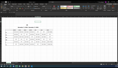 the part I didn't solve is for the 1/2 hour shifts. you could expand the table/graph to have 2-4 times more columns to account for those partial hours, that should work but I was hoping for some clever use of the bar graph to do the 1/2 or 1/4 or 3/4 values to give the partial bars which I could get to work on the end shift side but can't get the partial bar to look right on the start shift side so instead of a 1/2 solution I dropped it.