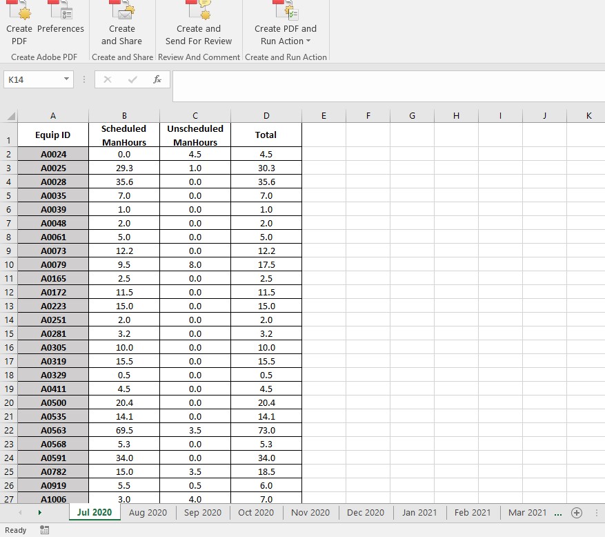 I need a 'Total" tab that shows the sum of all Equip ID#s.  Each tab doesnt have the exact same list of Equip ID#s so, it has to look for that specific ID# on each tab then show the total