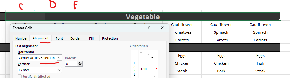 Have no idea if they need for something else. If not, we could do bit other way. If to keep, don't merge cells - that's always bad idea - use Center across selection starting from C