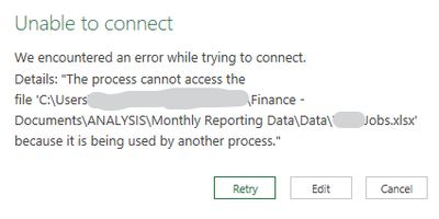 I have closed the source file and tried to connect and waited and tried again. The error message reads,