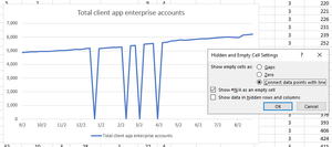 I built a chart in Excel that points to various data points. I can't seem to get the chart to change, however, when I change the options for handling blank values. Here's how I have it currently (to ...