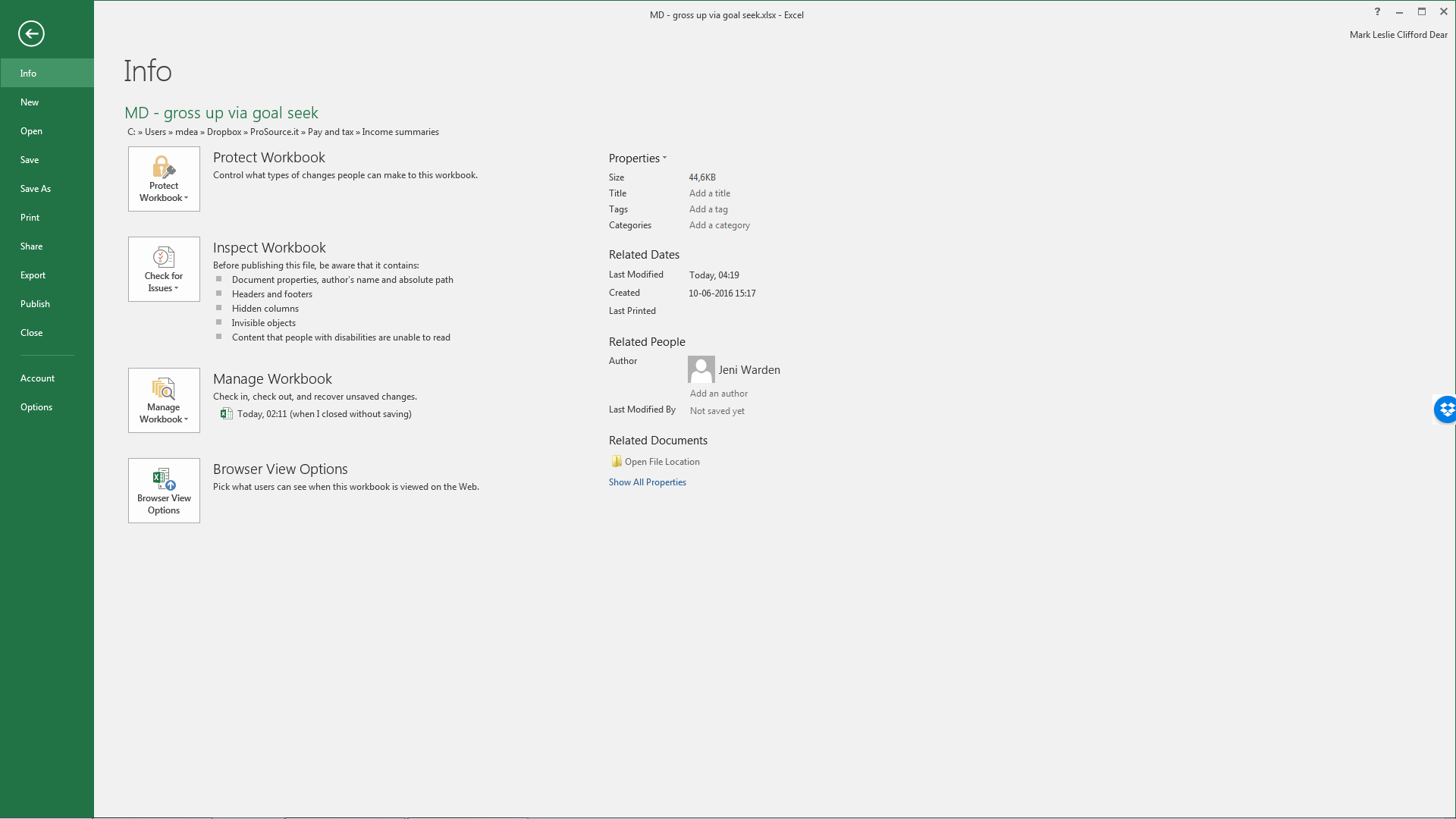 1. opened the .xlsx file in LibreOffice on the Linux laptop from the local machine dropbox folder