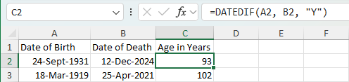 As you can see in the screenshot in my previous reply, DATEDIF can calculate the difference between dates in the 20th century and 21st century. What exactly is your problem?