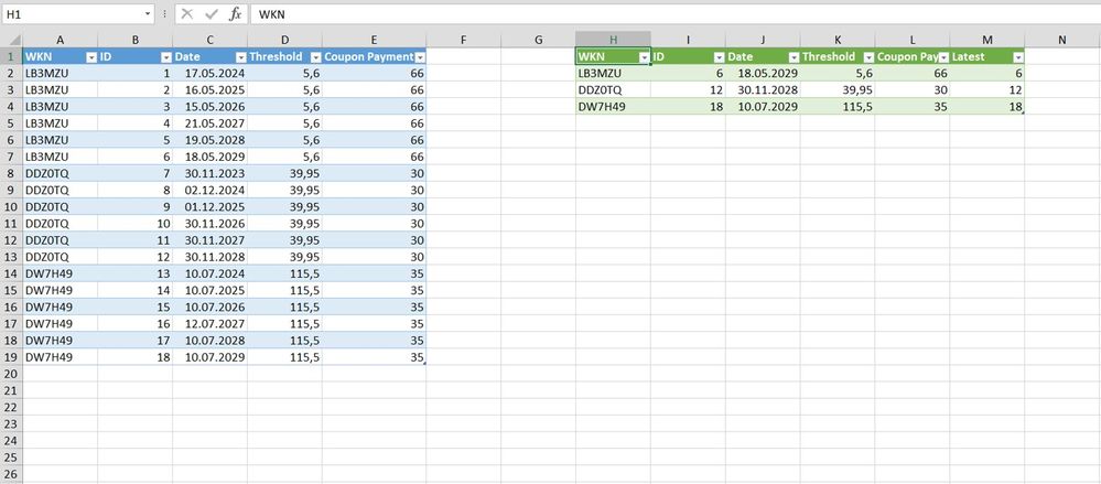 | WKN | ID | Date | Threshold | Coupon Payment |