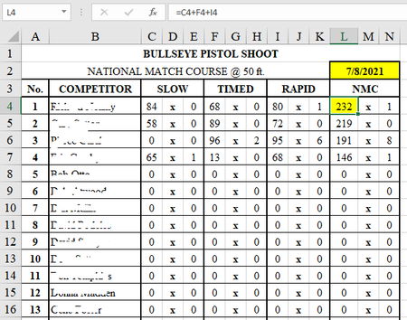 Using Excel for Bullseye Precision Pistol scores