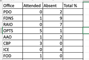 I need some help!! I'm not sure if it's possible to calculate attendance by organization and not by person. For example, I don't care how many people have attended a meeting for each office, because ...