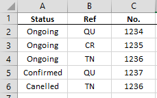 =IFERROR(INDEX($C$2:$C$6,SMALL(IF(($A$2:$A$6="Ongoing")*(($B$2:$B$6="QU")+($B$2:$B$6="TN")),ROW($C$2:$C$6)-ROW($C$2)+1),E2)),"")
