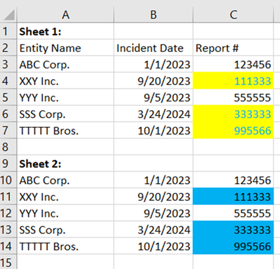 I'm attempting to populate blank cells on one sheet with information from another sheet. I need to match the information in sheet 2 to accurately fill the blank cells in sheet 1. The common fields between the sheets are company name and incident date.