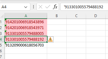 Keat_Koid Excel sees these as very large numbers but can't handle more than 15 digits. And looking at the first 15 digits only, the cells marked are indeed duplicates.