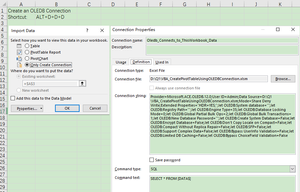 I'm trying to use VBA to create a PivotTable, using an existing WorkbookConnection(OLEDBConnection). Here is what I found: If the "Data Source" of the Connection String is outside ThisWorkbook, the...
