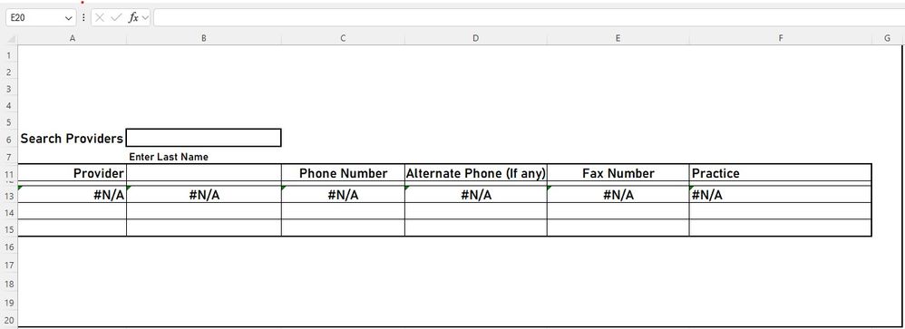=FILTER(Providers!A2:G150,Providers!A2:A150=B6)might work.