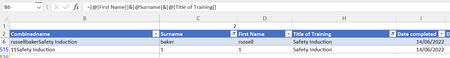 Hi, I have a spreadsheet with a list of training courses individuals have completed and the date, which is a connected export of a sharepoint list. I have another spreadsheet with is the training...