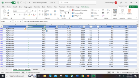 Hello- I am having trouble using a vlookup function for an excel project. I want to find the region name from a different worksheet corresponding to the country name. I have not been successful at th...