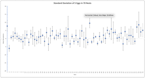 Hi I have a graph that represents the number of microplastics I found in various nests. I want the number to start at 1 (1st nest) and to end at 70 (last nest). The issue is, the first nest is start...