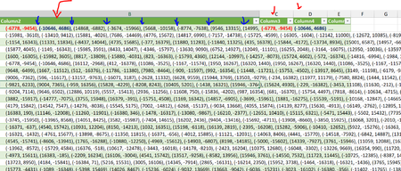 =REGEXEXTRACT(@data,"\(\-?\d+\,\s?\-?\d+\)",1)This does not use a separator at all but, rather, extracts any number pairs that match the format irrespective of what separates them.