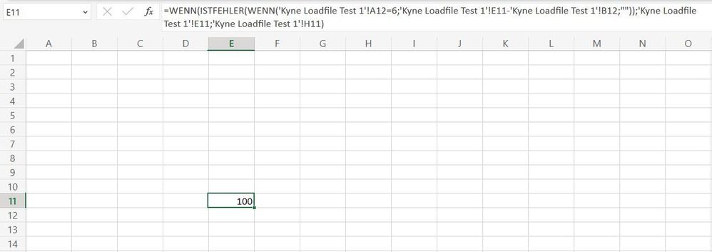 =IF(ISERROR(IF('Kyne Loadfile Test 1'!A12=6,'Kyne Loadfile Test 1'!E11-'Kyne Loadfile Test 1'!B12,"")),'Kyne Loadfile Test 1'!E11,'Kyne Loadfile Test 1'!H11)This formula returns the value from cell E11 of sheet 1 if there is an error in the calculation E11-B12.