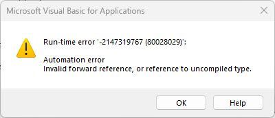 - References: Issues with references or missing libraries in your VBA project can also trigger automation errors. Check your VBA project's references to ensure they are all properly set and not marked as missing.