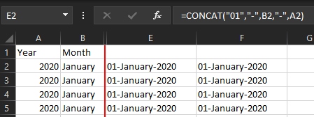 =DATEVALUE(CONCAT("01","-",B2,"-",A2))