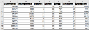 Hello, I have a problem understanding excel behaviour and hope you can help me with it. I have a table with next columns: ID, Points, Tasks Received, Tasks Finished, Task Finishing Rate, Multiplic...